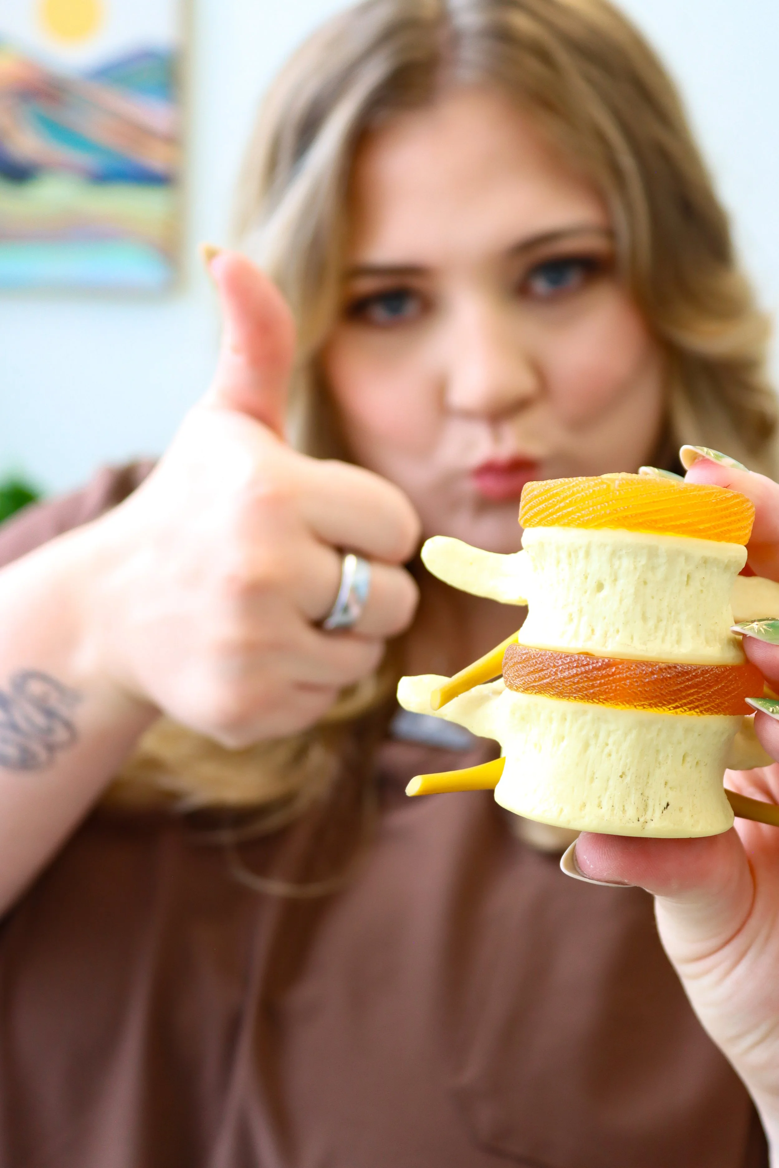 Dr. Patty will perform a thorough chiropractic evaluation, which may include posture and spinal checks, gentle scans, and, if needed, on-site x-rays for clearer insight.